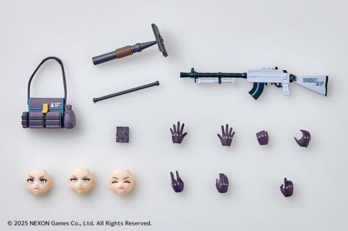 固有武器「RABBIT-26式機関銃」や常に持ち歩いているSRT特殊学園の教範、メモリアルロビーで手にしているシャベル迫撃砲も付属。