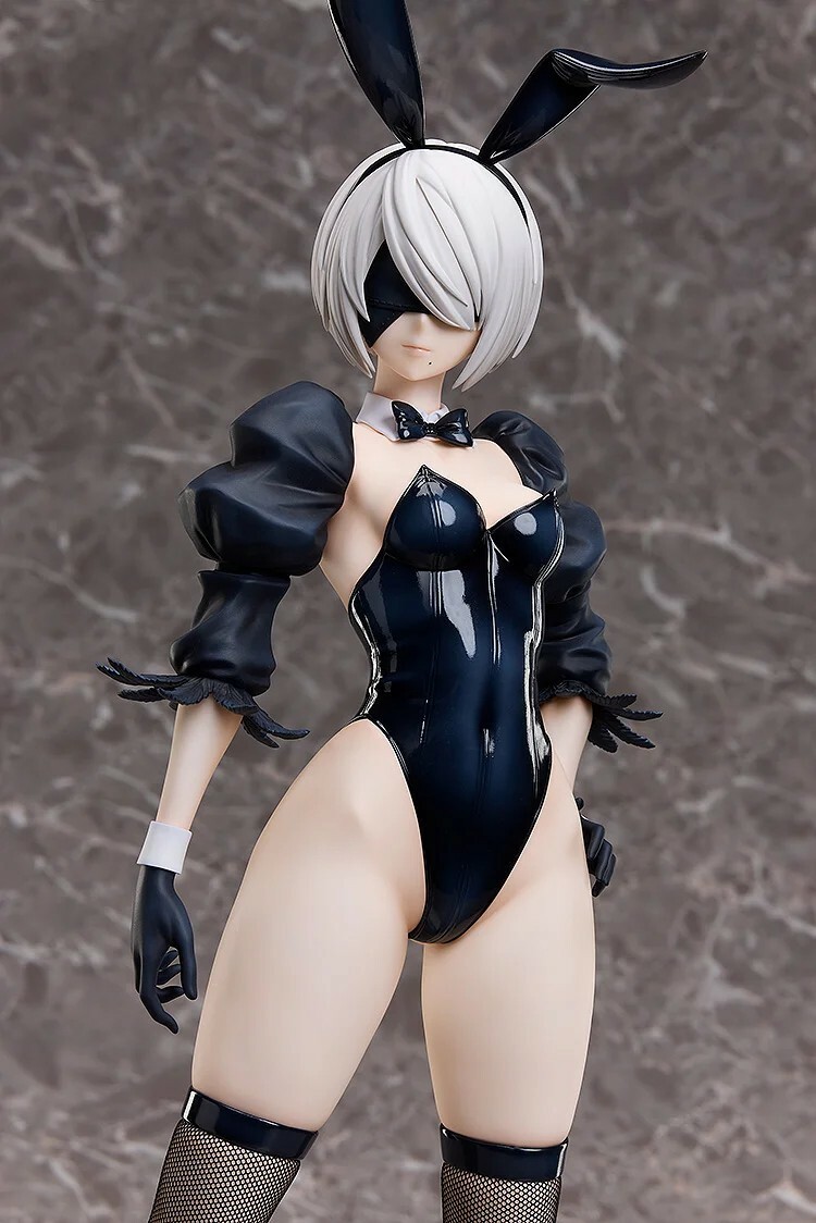 出自動畫《尼爾:自動人形 Ver1.1a》,「2B(寄葉二號B型)」化身為1/4比例充滿魄力的兔女郎模型登場!穿著採用特色服裝一部分的原創兔女郎裝。將「2B」風格的威風凜凜站姿製成模型。附替換零件——無面罩版本的看得到眼睛的臉部零件。 敬請享受只有1/4比例才能展現的獨特魄力與美麗。