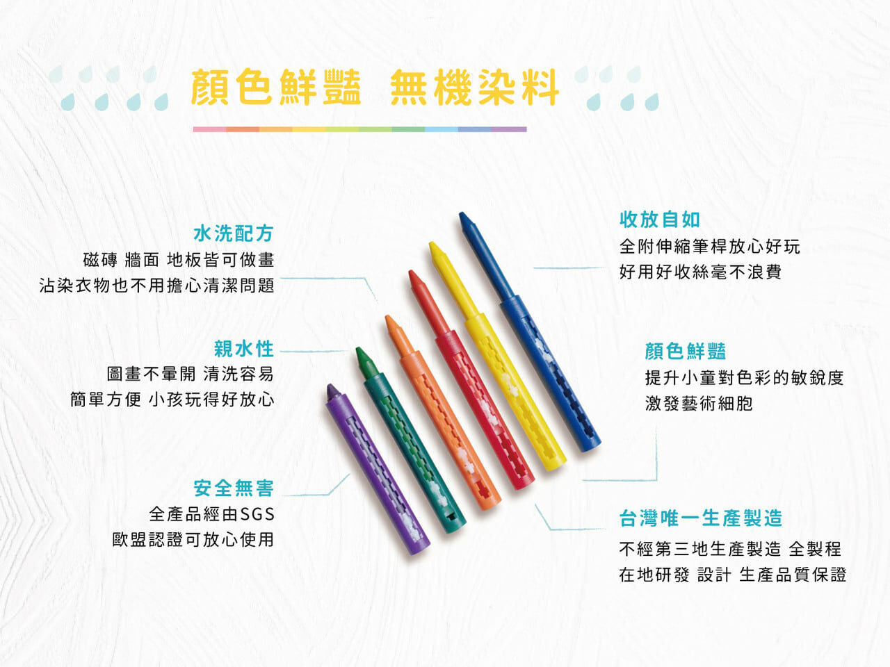 ·幼兒專用無毒蠟筆,顯色容易、安全無毒